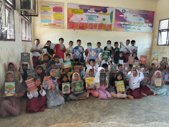 Mereka ingin kembali menjalani hidup normal, namun tanpa uluran tangan kita, perjuangan itu terasa semakin beratAnak - anak membersihkan Al Qur'an dan Buku Agama yang rusak